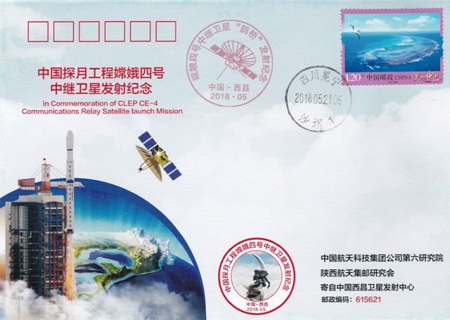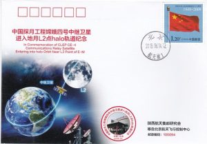 Entrée en orbite de halo au point L2 du satellite relais Chang’e-4. Oblitération du bureau de Pékin. |