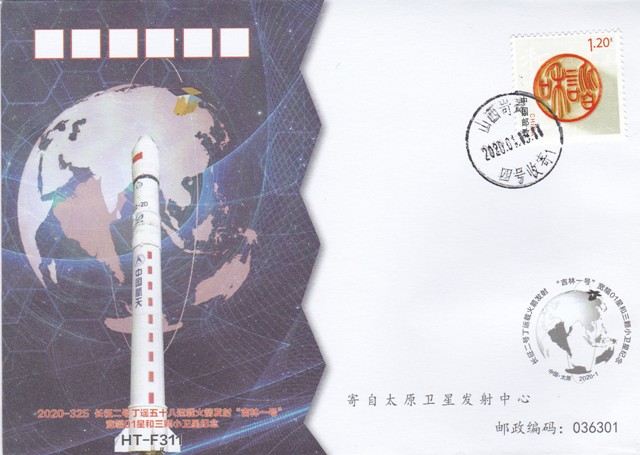 Lancement du satellite Jilin-1 01 à large bande et de trois petits satellites par une fusée Longue Marche 2D Y58, depuis le site de Taiyuan.