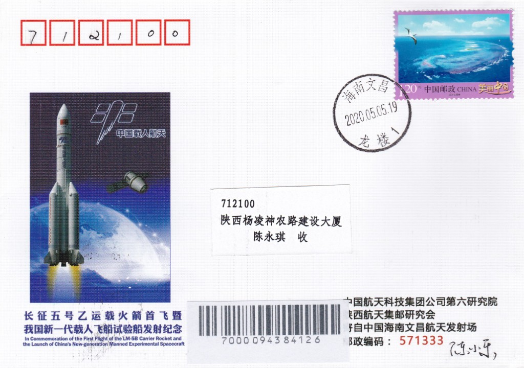 Lot de 3 enveloppes relatives au vol de test du vaisseau habité chinois.