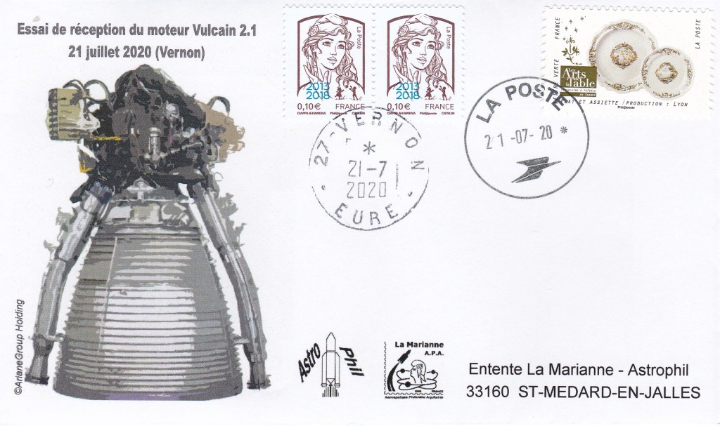Enveloppe relative à l’essai réussi du moteur Vulcain2.1 (pour Ariane6) le 21 juillet 2020 à Vernon.
