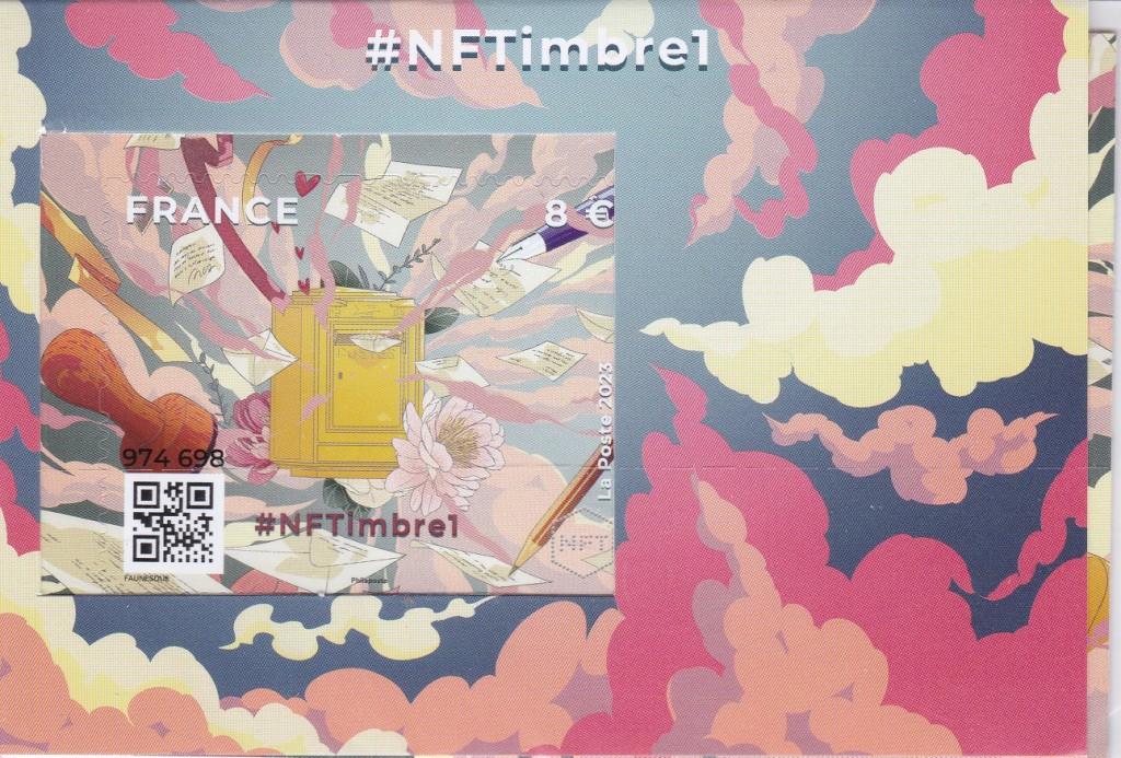 Nouveau produit émis par Philaposte en 2023. Le NFTimbre est un bloc de 1 timbre « physique » sous blister, numéroté, en papier, avec pouvoir d’affranchissement.