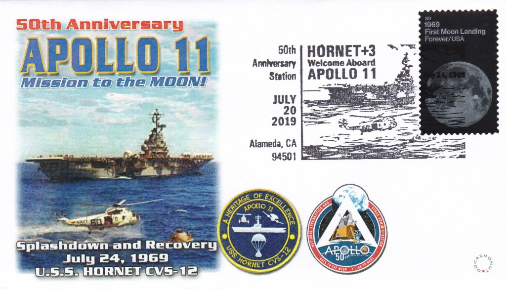 Enveloppe commémorative des 50 ans du retour de la mission Apollo11. Oblitération Alameda du 20 juillet 2019.