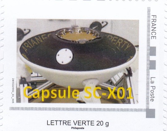 Timbre personnalisé émis en 2024 à l’occasion de la livraison à l’ESA de la capsule expérimentale SC-X01.