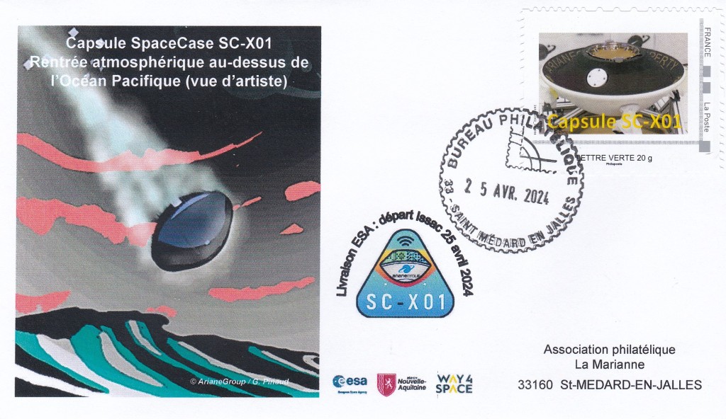 Enveloppe réalisée en 2024 à l’occasion de la livraison à l’ESA de la capsule expérimentale SC-X01, le 25 avril 2024.